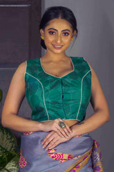 Sleeveless Bangalore Silk Kantha Stitch Blouse