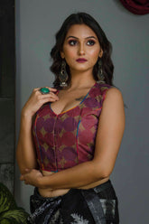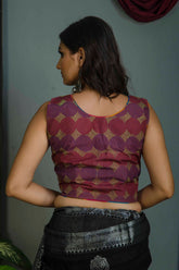 Sleeveless Bangalore Silk Kantha Stitch Blouse