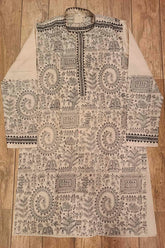 Beige Pure Tussar with Kantha Work (Hand Embroidery) Panjabi