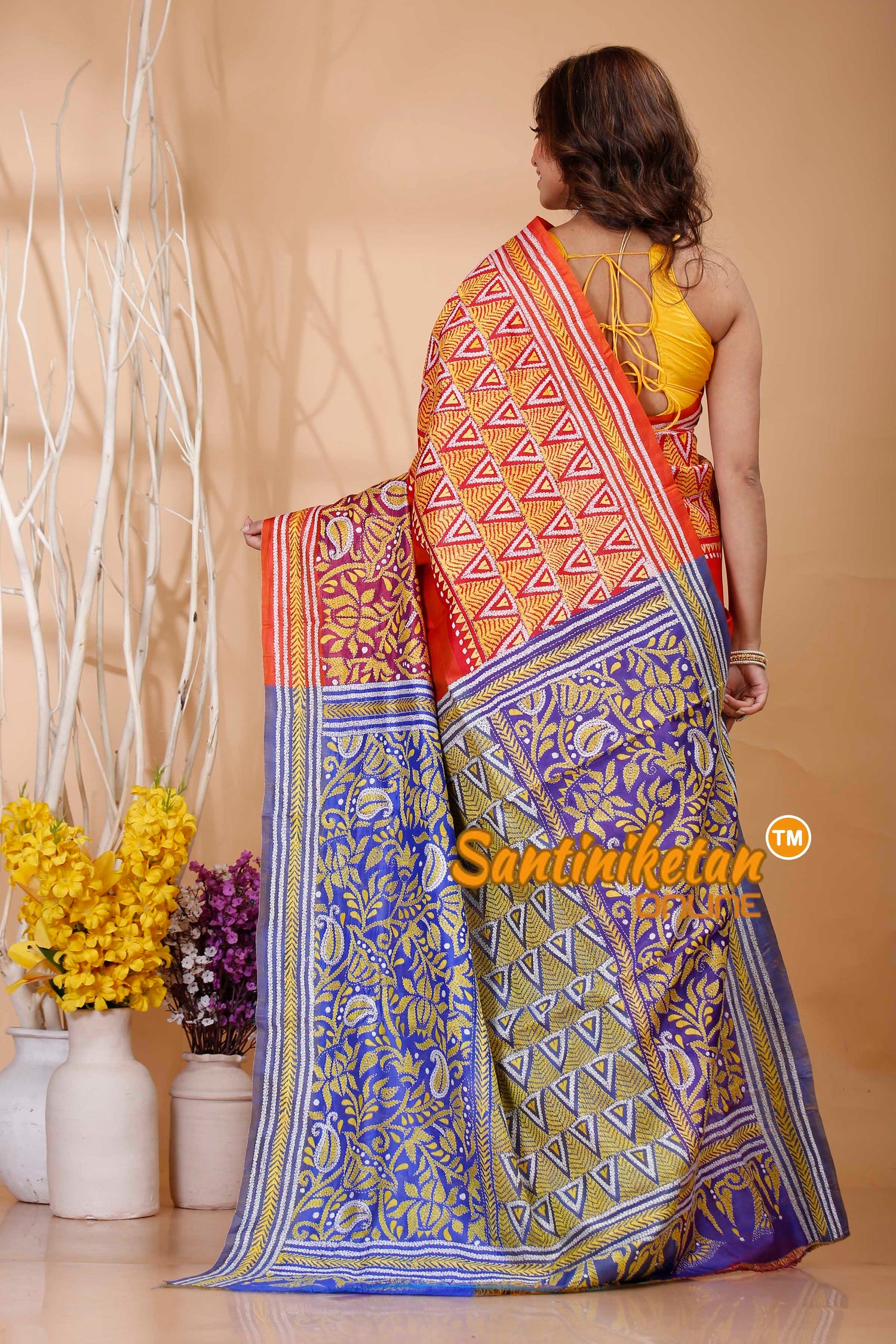 Bishnupuri (Katan) Silk Kantha Stitch Saree SN20242021019