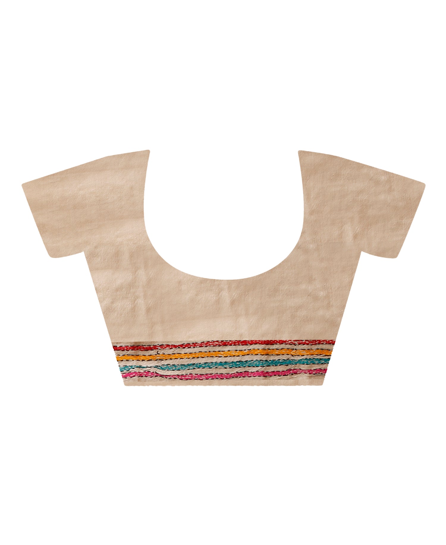 Pure Gachi Tussar Silk Kantha Stitch Saree