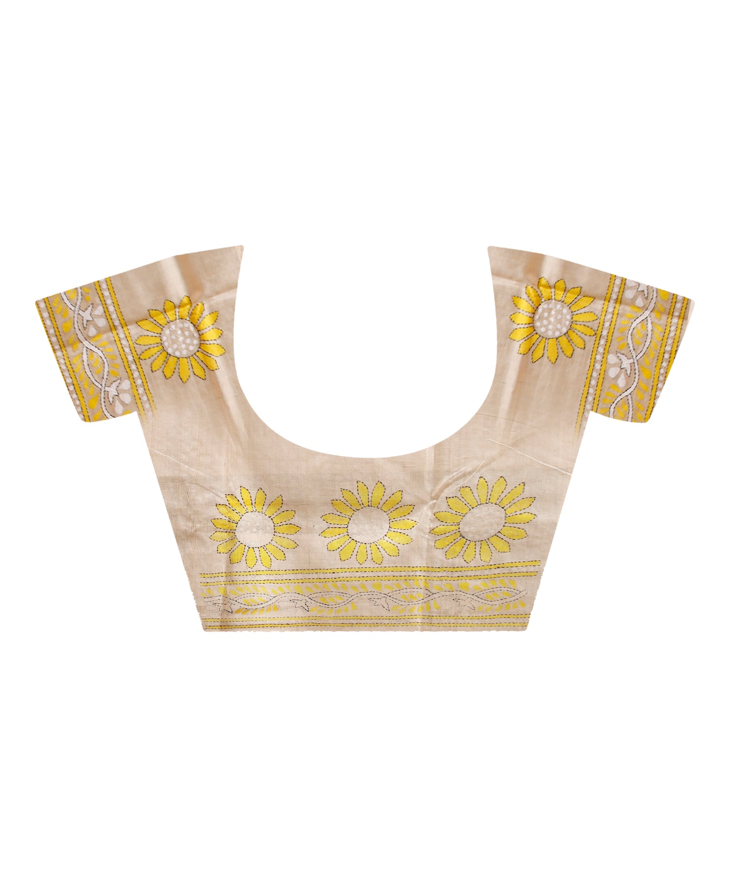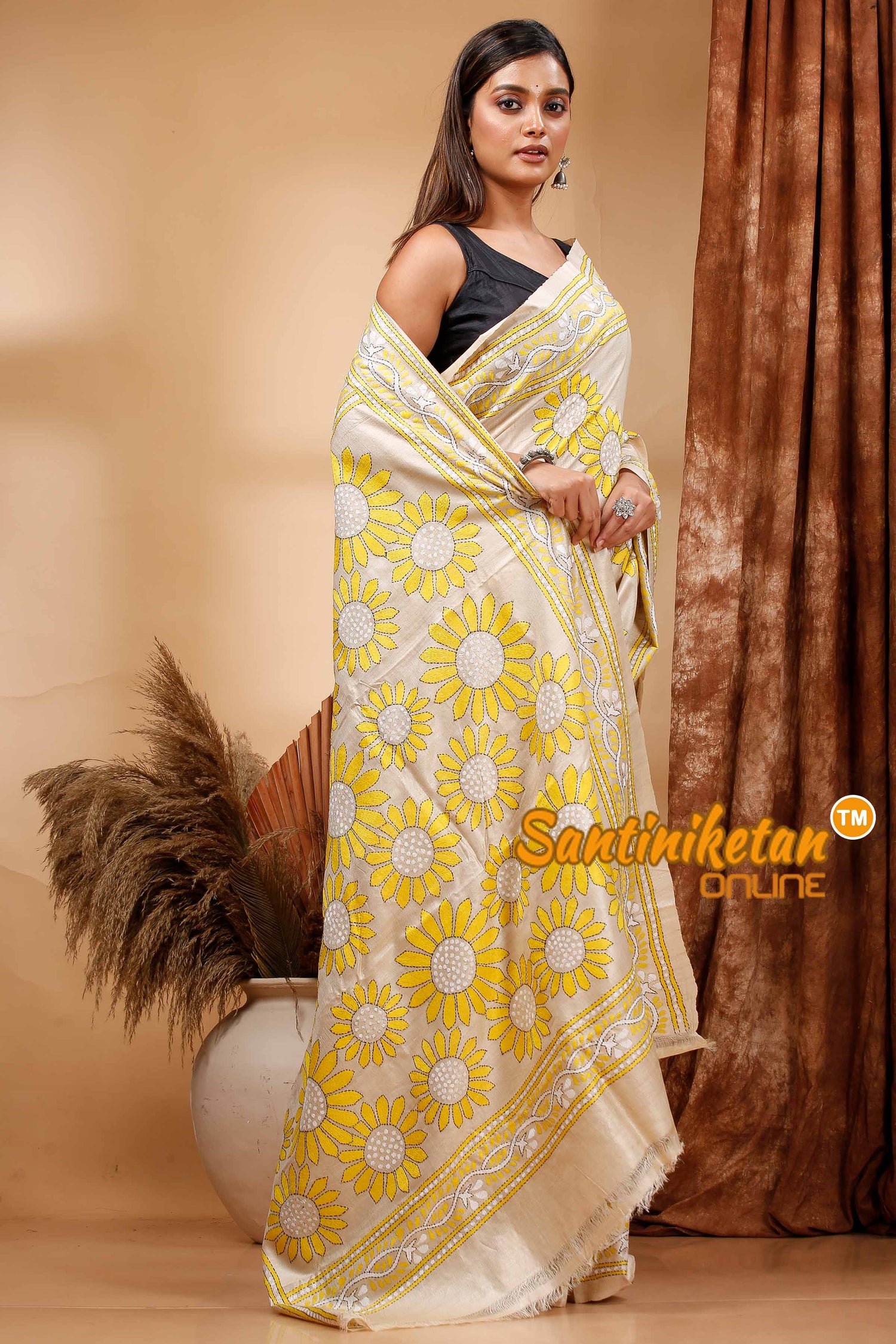 Pure Gachi Tussar Silk Kantha Stitch Saree