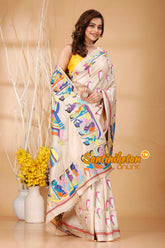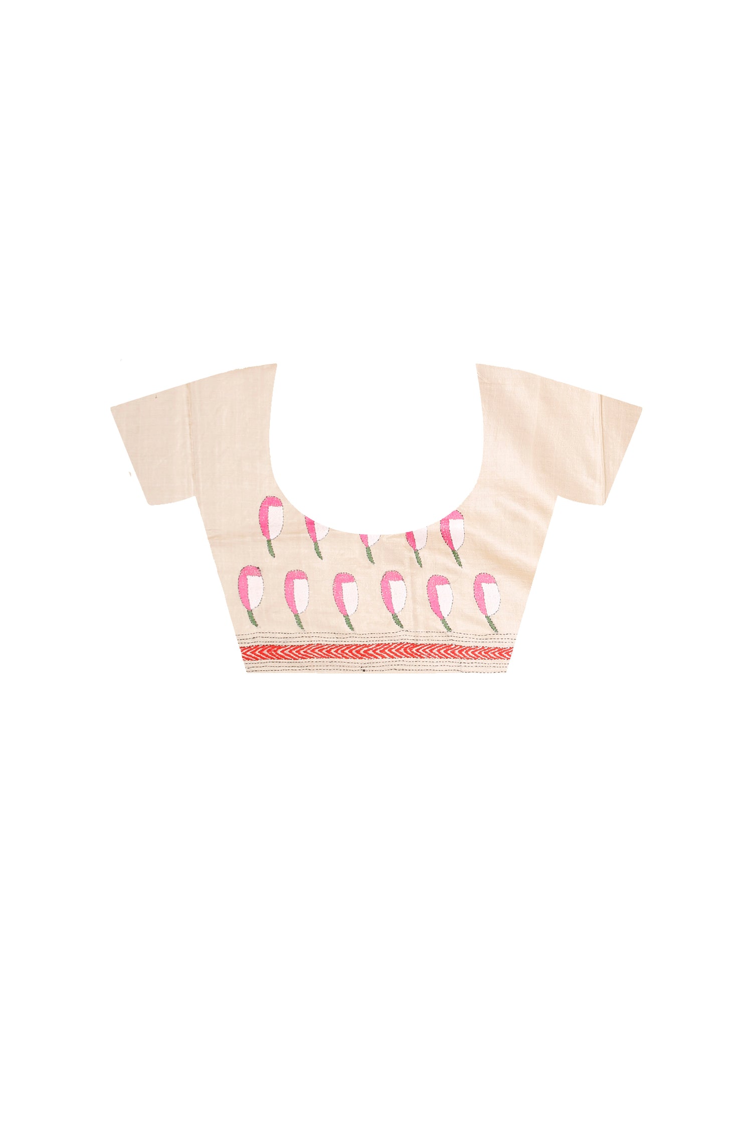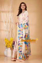 Pure Gachi Tussar Silk Kantha Stitch Saree