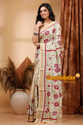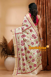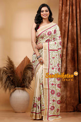 Pure Tussar Silk Zari Border Kantha Stitch Saree